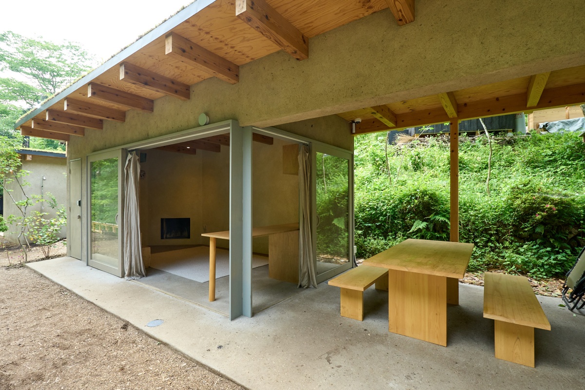 The posts and beams use timber from the village, while the walls are finished with plaster mixed with local soil. The team drew inspiration from buildings seen in Northern Europe. “In Finland’s national parks, free public shelters left a strong impression—people spending time as they wished,” says Masuda. “Another reference was Iceland’s old stone buildings with moss and straw roofs that felt like part of the landscape. We wanted HINOKO SHELTER to be that kind of ‘cabin that becomes one with nature.’”