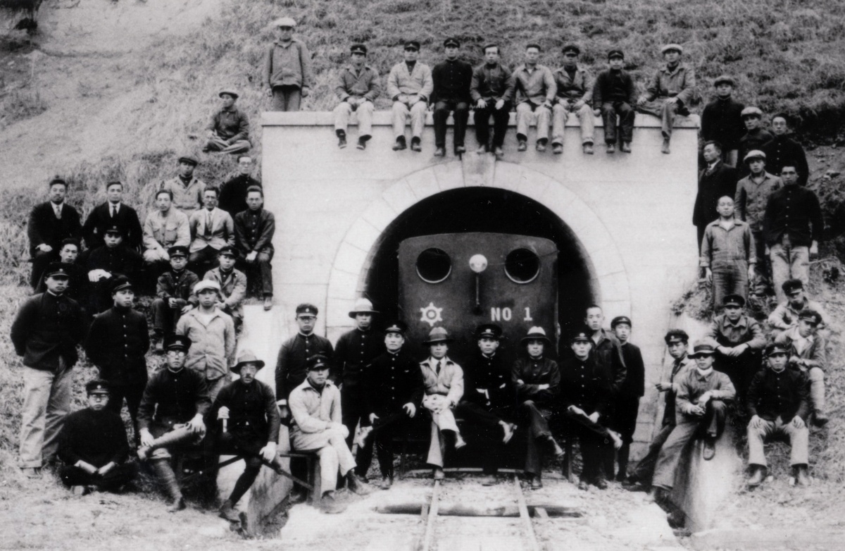 A commemorative photo at the west entrance of the First Tunnel (now Yokota Tunnel), likely taken in the early Showa era. Courtesy of Musashimurayama City Museum of History and Folklore. (provided by Mr. Mamoru Akiyama).
