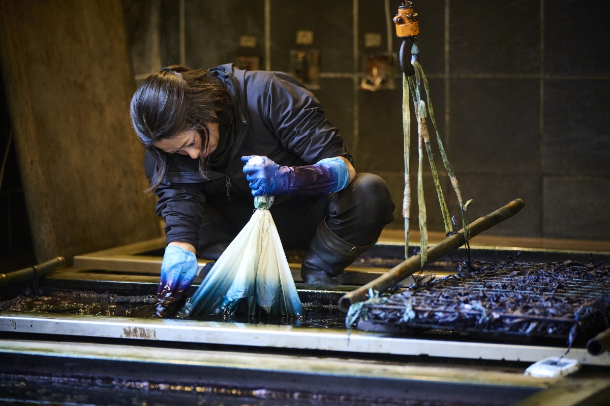 While many dyeing workshops focus on kimono fabric, Kosoen collaborates with modern apparel makers to create a wide range of garments in the alluring deep shades of indigo. Foregoing chemical use throughout its processes, Kosoen’s dedication to traditional methods has drawn indigo dyers from 30 countries seeking to learn from its artistry, according to Murata.