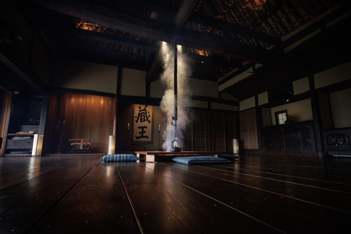Most minka farmhouses have a large wooden-floored space, with an firepit in the center. The room was multipurpose, used for work like weaving and basketry—and an inviting place to talk, eat, or have tea. (photo: Rice Terraces Villa Sasayuri Ann)