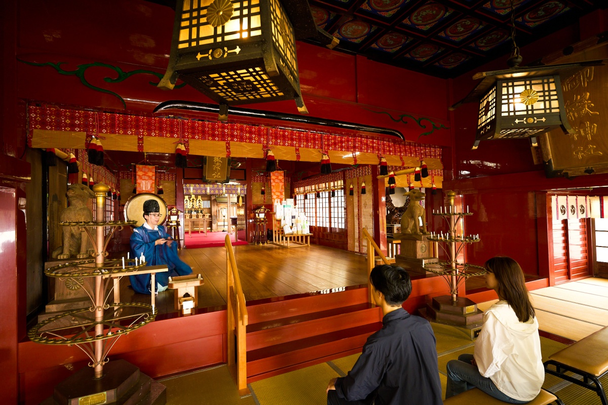 神社では、本殿内で正式参拝を体験。作法や所作は事前に村野さんが説明してくれるため、初めてでも安心して臨むことができた。