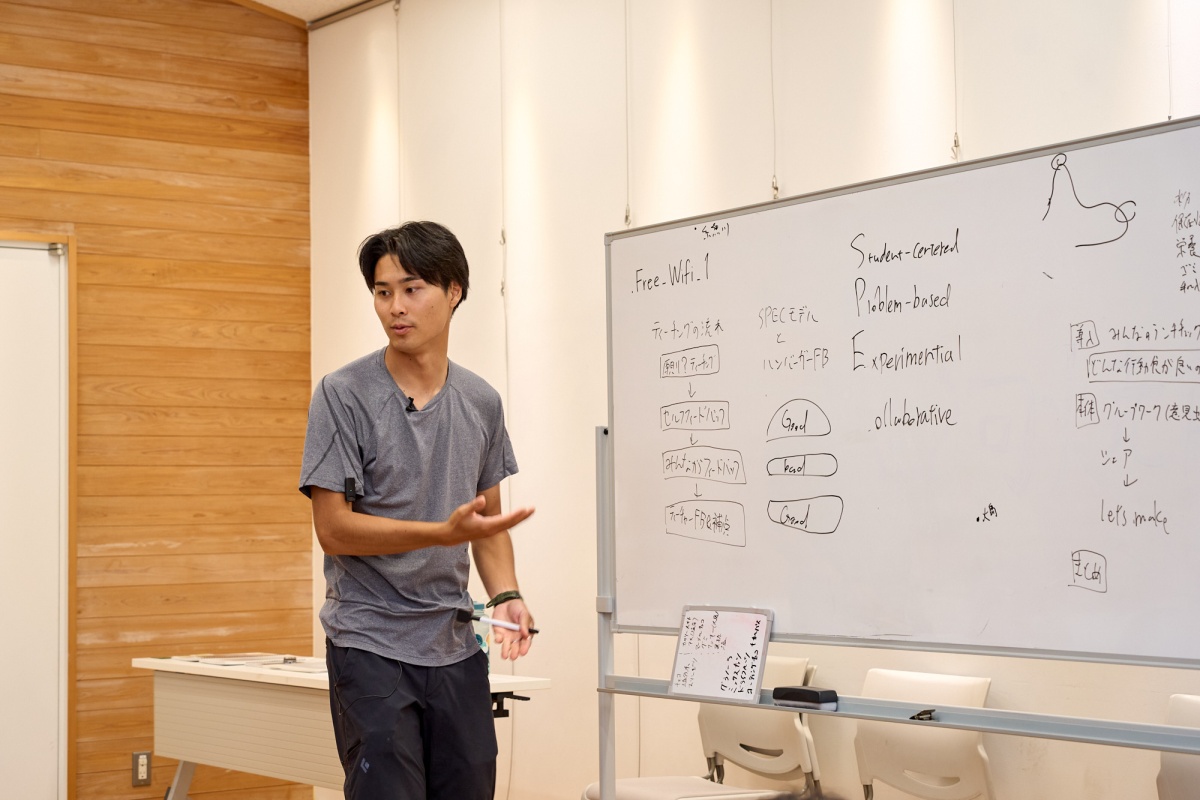 屋外で行われたティーチング実習では、受講者の考えに対してフィードバックを行い、実践的な学びを深めた。