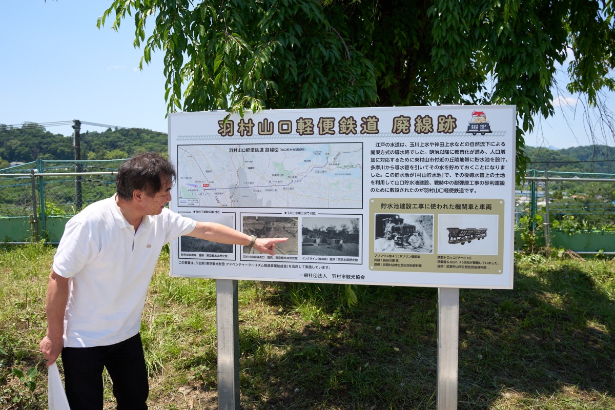 羽村市観光協会では、かつて貯水池建設に使われた「羽村山口軽便鉄道」の跡地を巡るツアーなどを通じて、地域が果たしてきた役割や歴史を今に伝えている。