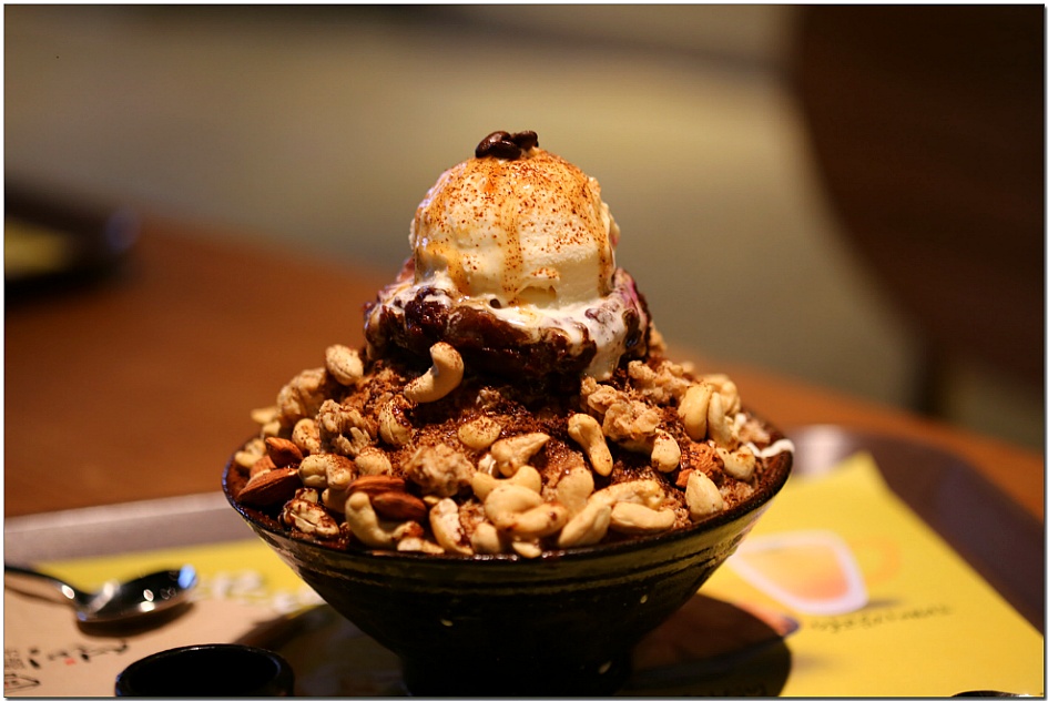 고소한 콩고물이 들어간 인절미 빙수(850엔)는 설빙의 대표 빙수로 우유를 갈아 만든 부드러운 얼음과 달콤한 팥, 연유의 조합으로 환상적인 맛을 자랑하지요. 세계 어느 나라를 가도 인절미, 팥을 활용한 차가운 디저트는 본 적이 없네요.