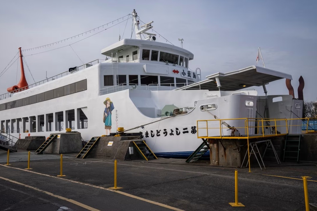 小豆島有幾個港口,分別對應島上不同的區域。多數旅客從香川縣高松或岡山縣的港口出發,但我最推薦的是從兵庫縣姬路搭渡輪,直達島嶼東側的福田港。從京都出發全程約四小時,轉乘少、不費事;加上渡輪本身的那段海上時光,從離開本州的那一刻起,心情就已經開始換頻道了。