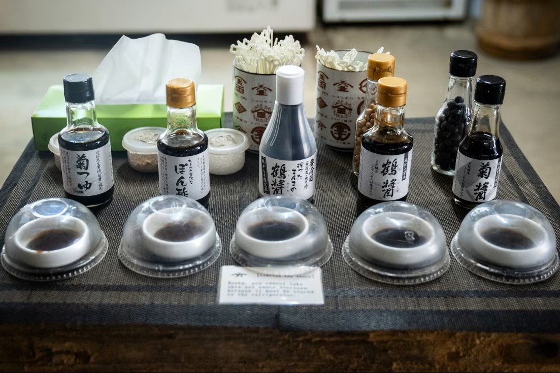 醬油村裡最有名的,是「山六醬油(ヤマロク醬油)」。他們用大型傳統木桶長期陳釀醬油,有些桶子已經用了超過一百年,桶壁上密密麻麻地住著幾十年間慢慢累積起來的微生物群落。這裡的醬油之所以好喝,不只是因為原料好、師傅厲害,更是因為時間——那種深沉、層次豐富的味道,是急不來的。